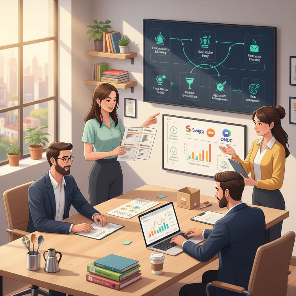 We help food businesses make smarter decisions through clear strategy and practical business planning. Our team works across restaurants, cloud kitchens and QSRs, guiding them with insights that improve profitability, reduce food cost and strengthen day-to-day operations.